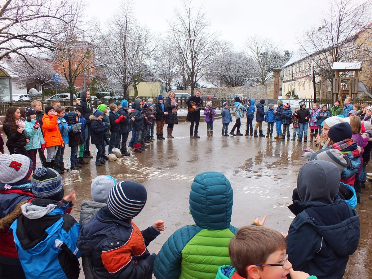 Freitag, der 30. Januar 2015, war der Tag der Halbjahreszeugnisse. Gemeinsam haben alle unsere Schülerinnen, Schüler und Lehrkräfte im Anschluss an die erste große Pause auf dem Schulhof das erste Halbjahr "verabschiedet". Dazu gehörte natürlich auch das gemeinsame Singen unserer Schulhymne. Auf Wiedersehen mussten wir bei dieser Gelegenheit auch einer Schülerin aus der 3. Klasse sagen, die unsere Schule umzugsbedingt verlässt. Wir wünschen ihr für ihren weiteren Schul- und Lebensweg alles denkbar Gute! Nach den verdienten "Zeugnisferien" und der damit verbundenen Erholungspause werden wir alle in der kommenden Woche mit neuer Energie in das zweite Schulhalbjahr starten.