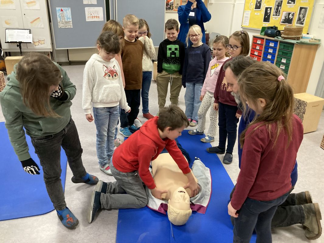 Am Donnerstag, dem 09.01.25, besuchten uns eine Mitarbeiterin und ein Mitarbeiter des Klinikums Wolfenbüttel und mit übten mit den Kindern aller Klassenstufen ein "Notfalltraining" bzw. "Grundlagen der Ersten Hilfe" ein. Dafür stand jeweils eine ganze Unterrichtsstunde zur Verfügung. Wir bedanken uns für diese sehr interessante und hilfestiftende Aktion!