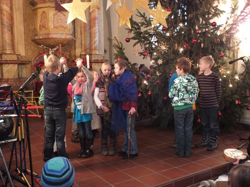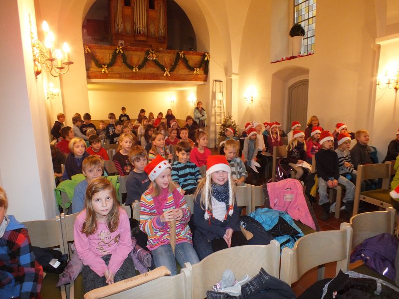 Unsere Zusammenkünfte in der Denkter Kirche haben schon Tradition und so hatten wir auch zur Einstimmung auf die Adventszeit am 4. Dezember 2012 eine kleine Feier vorbereitet. Frau Kawa übernahm die Zusammenstellung des Programms und moderierte die Beiträge der einzelnen Klassen. Mit dem abschließenden gemeinsamen Lied „Schneeflöckchen“ gingen wir „adventlich und weihnachtlich gestimmt“ in die Schule zurück.