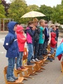Am Montag, dem 02. September 2013, präsentierten die Klassen 4a und 4b auf dem Schulhof ihr Theaterstück "Des Kaisers neue Kleider". Als Ehrengäste waren unsere neuen Erstklässler eingeladen, aber auch alle Kinder aus den 2. und 3. Klassen durften als Zuschauer dabei sein. Dem frischen Wind und Nieselregen setzten wir Schirme und Jacken entgegen. Im Anschluss an das Stück wurden den Erstklässlern von ihren Paten aus den 4. Klassen noch kleine Geschenke überreicht.