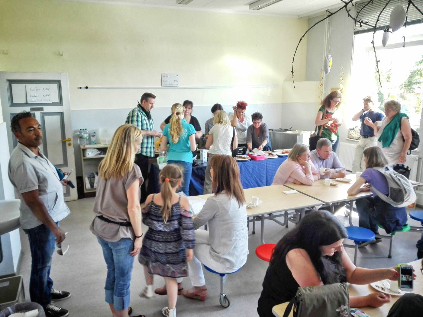 Am Freitag kamen nachmittags viele Besucher, um die Ergebnisse zu bestaunen. Mit Elternhilfe war in der Mensa ein Kaffee- und Kuchebuffet für die Gäste bereitet worden und fand großen Anklang.