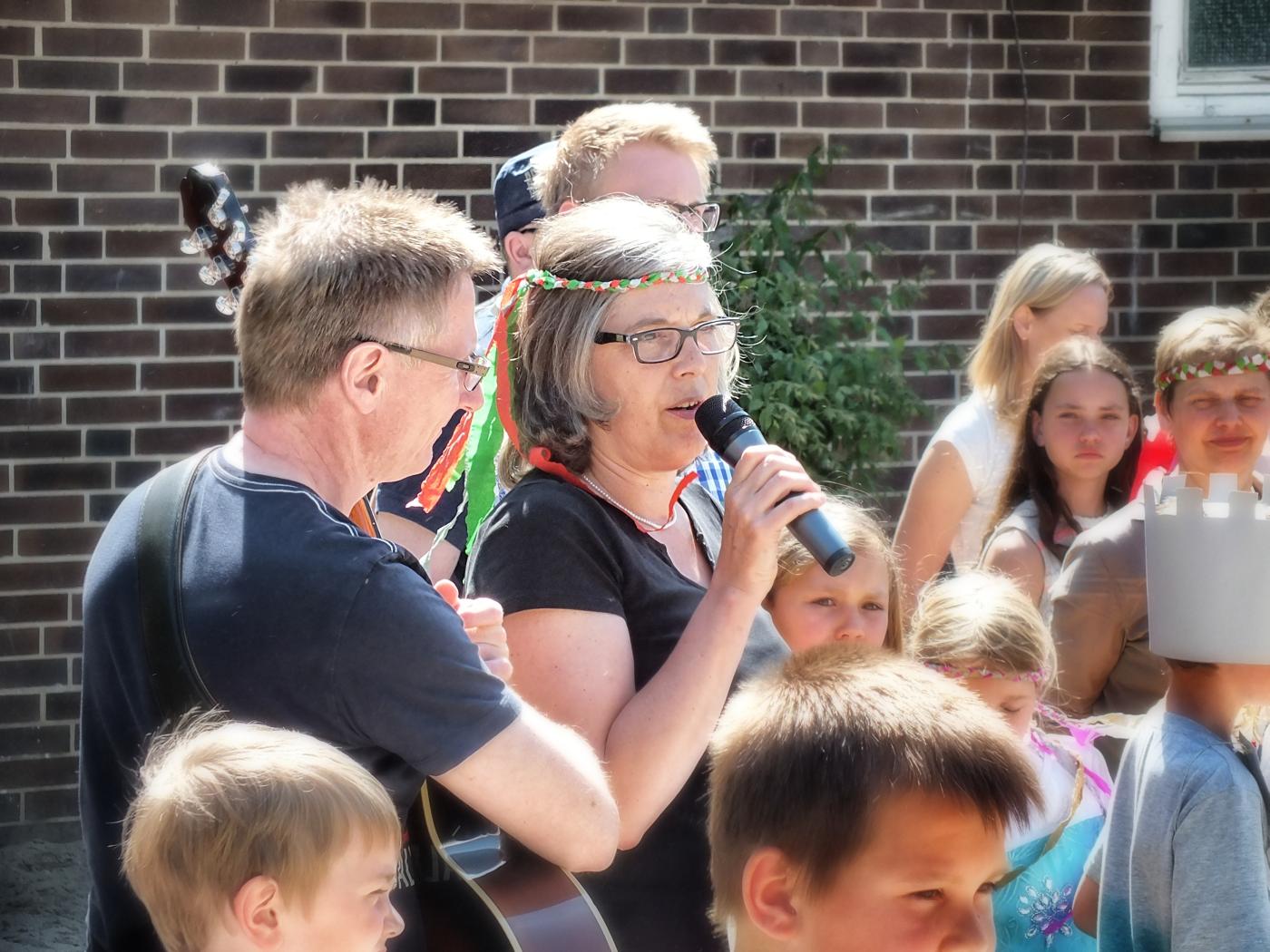 Die ganze Schule hatte das Lied vom "Ritter Gieselher" einstudiert und die 4. Klasse gestaltete Bilder zu den Strophen, die sie morgens während des Singens präsentierten.