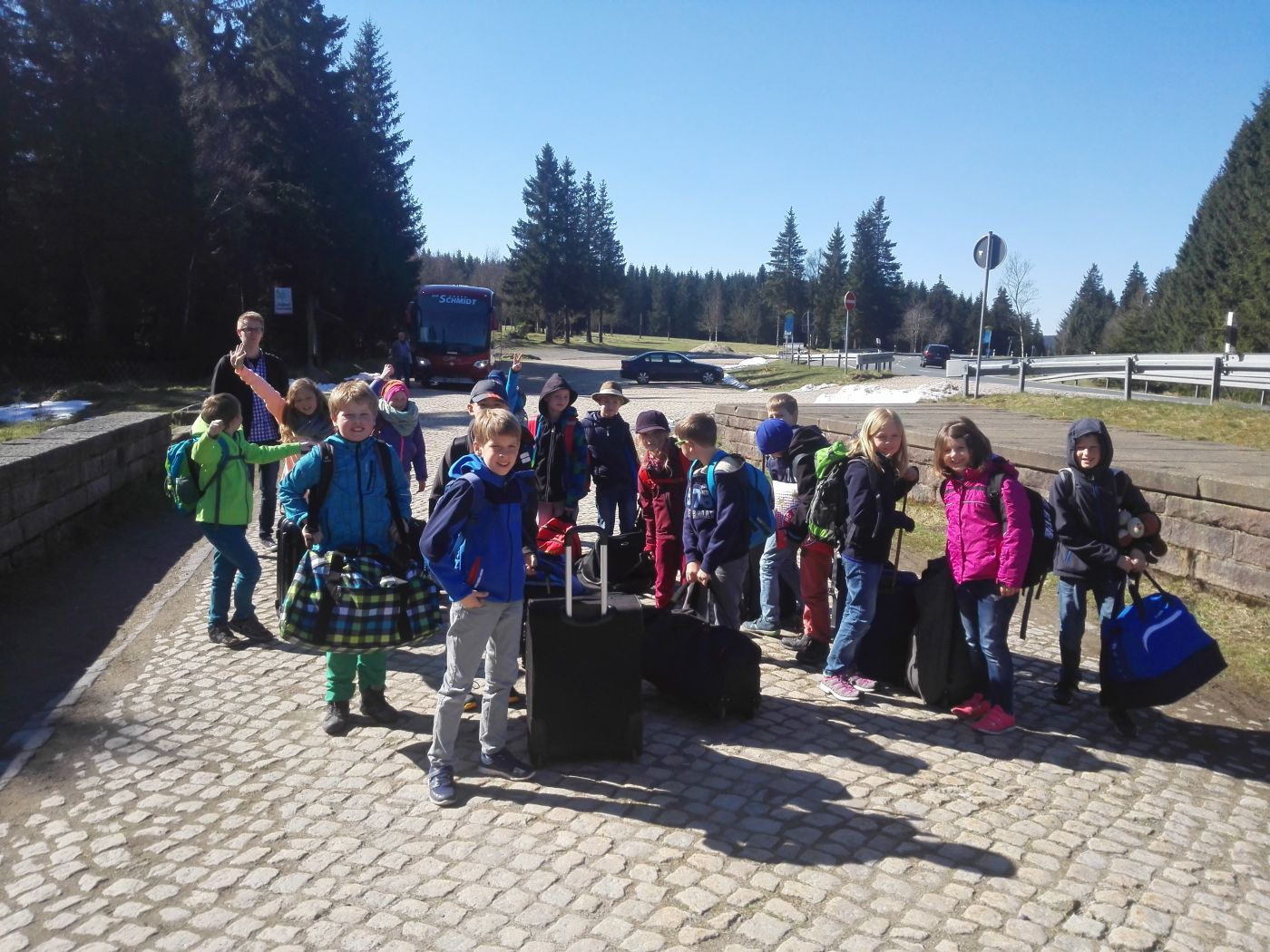 Bei schönstem Wetter startete die Klasse 3 auf ihre Klassenfahrt in den Harz, ins Naturfreundehaus Oderbrück. Kaum angekommen, mussten alle ihr Gepäck über einen schmalen Holzplankenpfad zur Herberge bringen, da der Bus nicht bis ans Haus heranfahren konnte. Dort wurden wir von Tobbe begrüßt, dem Chef von TOKATO Erlebnisreisen, der für diese Tage ein tolles Programm vorbereitet hatte. Und da das Wetter so super war, starteten wir gleich nach dem Einräumen der Zimmer zu einer ausgedehnten Wanderung zum Oderteich. Dieser führte nur wenig Wasser, so dass viele Felsbrocken zum Klettern und Herumtoben einluden. Es sah fast aus, wie auf einem fremden Planeten. Ein großes Lob an alle Kinder: ihr habt klasse durchgehalten und nicht einmal gemeckert oder gestöhnt, obwohl wir mehrere Stunden unterwegs waren. Begeistert habt ihr überall die Natur bewundert und immer wieder Fotomotive entdeckt. Das war schon mal ein perfekter Start!