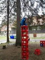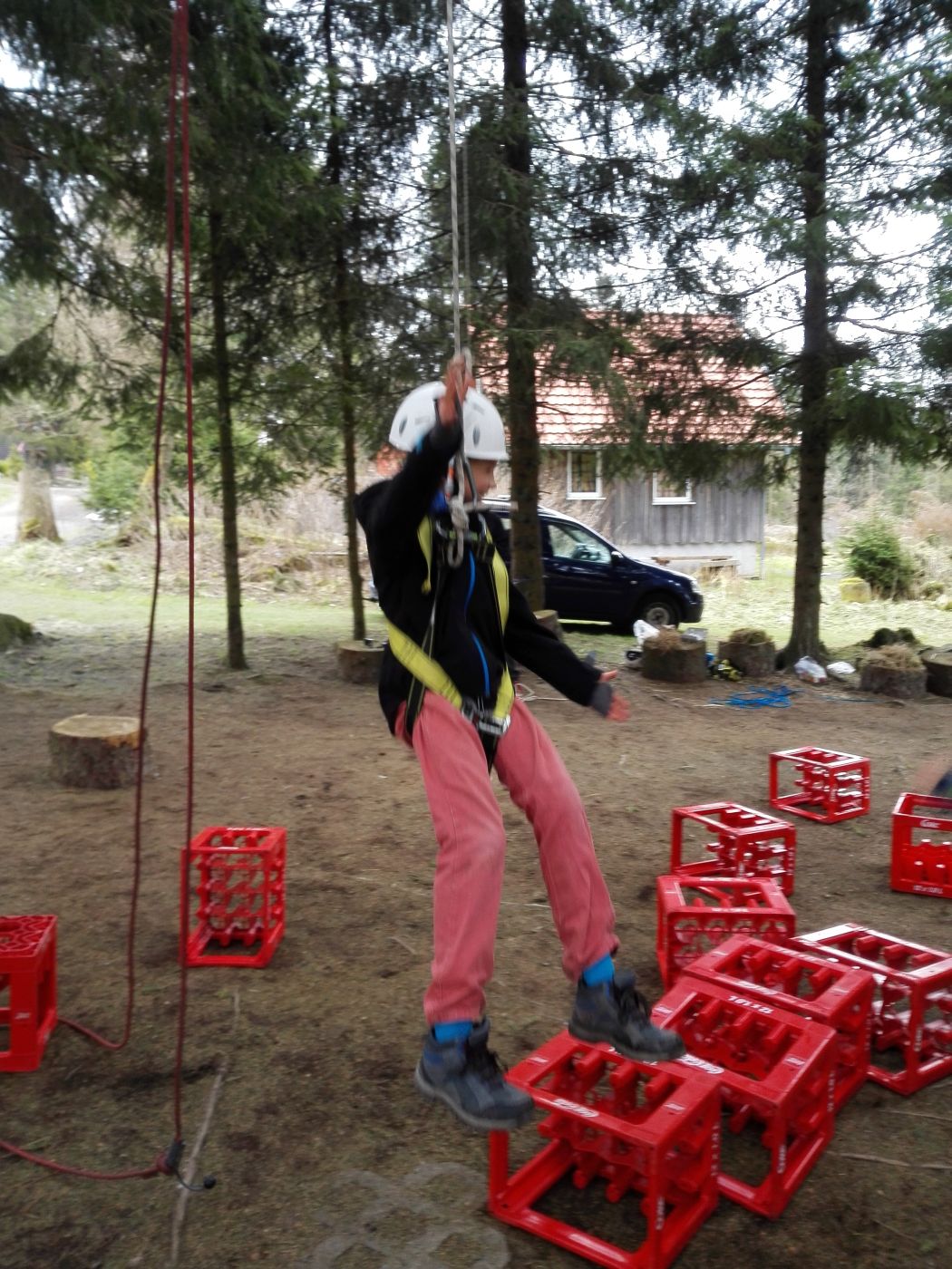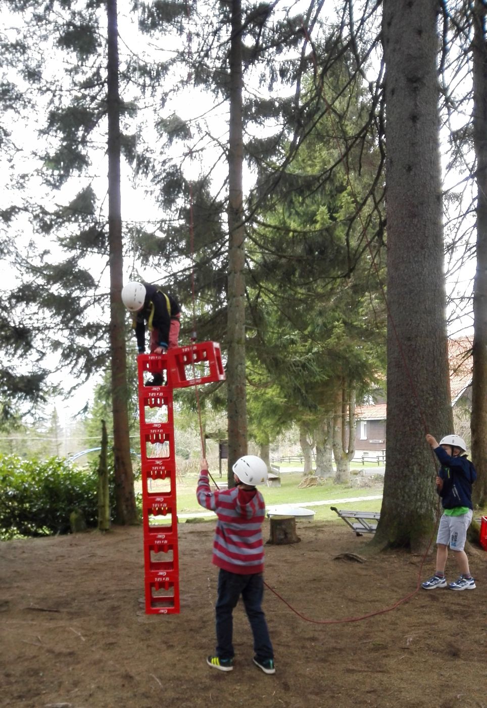 Der Tag fing schon kühl und trübe an. So ist das nun mal im Harz, häufige Wetterwechsel. Aber das hat uns nicht abgehalten. Kistenklettern und Bogenschießen waren angesagt. Und alle sind geklettert wie die Gämse. Der erste Rekord von 10 Kisten wurde sogar noch überholt und am Ende wurden sogar 12 Kisten gestapelt. Bravo! Beim Bogenschießen galt es dann alle Regeln genau einzuhalten. Schließlich schossen wir mit richtigen Pfeilen und keinem Kinderspielzeug. Das Treffen der Scheiben war gar nicht so einfach, aber nach kurzem Training habt ihr Robin Hood Konkurrenz gemacht! Zum Abschluss des Tages wurden noch eure in den Pausen erstellten Nester auf Haltbarkeit getestet. Da ging so manches Ei zu Bruch!