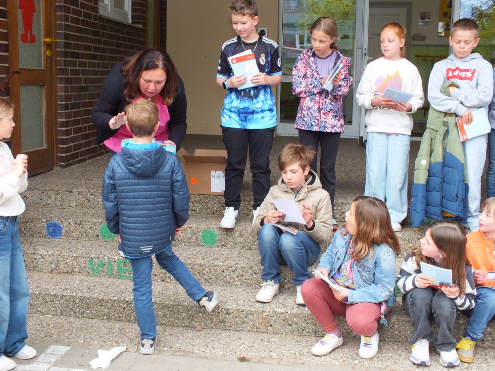 Am 16.05.2025 wurde die Kinder, die am Wettbewerb "Känguru der Mathematik" teilgenommen hatten, von der Mathematiklehrerin Frau Bork vorgestellt und mit Urkunden geehrt.